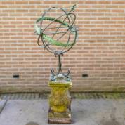 Metalen zonnewijzer op zandstenen basement, 155 × Ø 55 cm