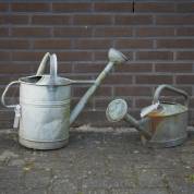 Twee verzinkte ijzeren gieters