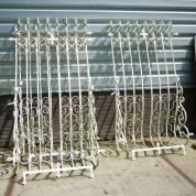Drie witgelakte smeedijzeren raamhekken, maximale kozijnmaat 154 × 97 cm