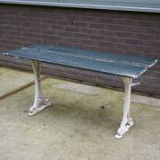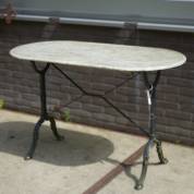 Tuintafel op groengelakt gietijzeren onderstel met marmeren blad -gebruikssporen-, 75 × 120 × 60 cm
