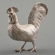 2e gehalte zilveren strooier in de vorm van een haan, gewicht 62 gram, circa 9 × 9 × 4 cm