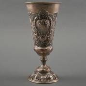 3e gehalte zilveren beker met gedreven jachtdecor in inscriptie: 'X. Deutsches Bundes Schiessen Berlin Juli 1890', gewicht 241 gram, 22,5 × Ø 11 cm
