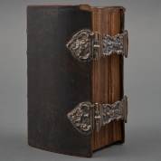 Kerkbijbeltje: biblia, dat is de gantsche H. Schrifture, Staten Generaal versie, uitg. Nederlandsche Bijbel-Compagnie, 1851, kl. 8vo., leer over houten platten, met twee zilveren klampen, vermoedelijk meester Gerrit J. Schuurman, Zwolle, 1787-1811 -enkele kleine defecten-