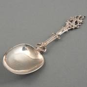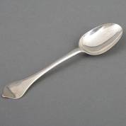 Zilveren dessertlepel rattenstaart en hondenneus, verso gemonogrammeerd 'A K', meester: Johannes van Urck, Middelburg, 1797, gewicht 24 gram, lengte circa 15,5 cm