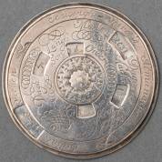 Zilveren eeuwigdurende kalender; twee ronddraaiende schijven met gegraveerd dorpsgezicht en weergave van de weekdagen, andere zijde de weergave van de dagen en maanden, Nederland, 18e eeuw, gewicht 15,4 gram, Ø 4,5 cm