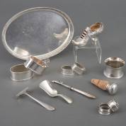 Divers 2e gehalte zilverwerk, waaronder: ovaal dienblaadje met opstaande eierlijst, afgezet met parelrand, meester: Firma Vos & Co, Haarlem, 1917, gewicht zilver 483 gram, dienblad 22 × 16 cm