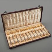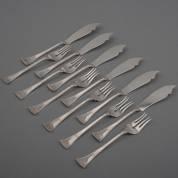 Zes 2e gehalte zilveren viscouverts, meester: Pleyt & de Wilde, Schoonhoven, 1919, gewicht 500 gram, lengte circa 21 cm