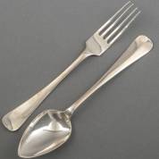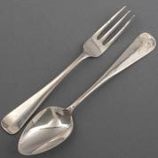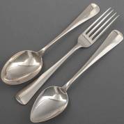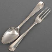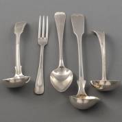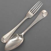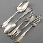 Twee 1e gehalte zilveren lepels en drie vorken, meester: Gerardus Peeters, Rotterdam, 1804, 248 gram, lengte lepel 21 cm