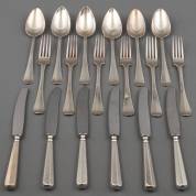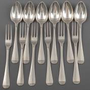 Twaalf 2e gehalte zilveren dinercouverts, Haags lof, meester: J.M. van Kempen & Zonen, Voorschoten, 1867, gewicht 1470 gram, lengte circa 21 cm