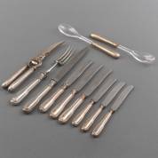 Twaalfpersoons 2e gehalte zilveren dessertbestek Hollands glad, meester: Albert Daniel Pijzel & Willem Carbentus, 's-Gravenhage, 1855, gewicht 926 gram, lengte circa 18,5 cm