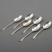 Zes 1e gehalte zilveren lepels, Hollands glad, Rotterdam, 1782, gewicht 356 gram, circa 20,5 cm