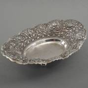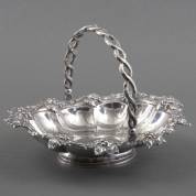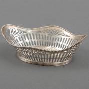 BWZG soezenmand, gelobd model met druivenrankdecor en met gevlochten hengsel, op ovale standring, 19e eeuw, gewicht 451 gram, circa 18 × 29 × 22 cm -gaatje in hengsel-