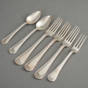 Diverse 2e gehalte zilveren bestekdelen, rondfilet, kleinste lepel verso gegraveerd 'Emile', gewicht 335 gram, grote vork circa 20 cm