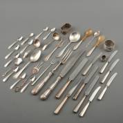 Divers klein zilverwerk, diverse gehaltes, waaronder servetring, mes met zilveren heft, Friesland, 19e eeuw -defect-, gewicht zilver 400 gram,