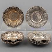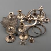 Divers zilverwerk, diverse gehaltes, waaronder BWZG Djokja, hengselschaaltje en kandelaartjes, gewicht zilver 877 gram -defecten-