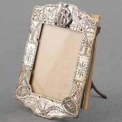 2e gehalte zilveren portretlijst met houten achterzijde en staander, 20,5 × 14,5 cm