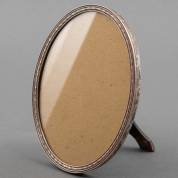 Ovaal 2e gehalte zilveren portretlijstje met houten achterzijde en staander, 15 × 11,5 cm
