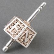 Zilveren miniatuur: filigrain rebustolletje, op de zes zijden de letters: S.A.B.N.T.D., 18e eeuw, gewicht 8 gram, circa 4 × 1,5 × 1,5 cm