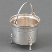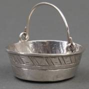 Zilveren miniatuur: mand, meester: Wessel Jansen, Amsterdam, 17e eeuw, gewicht 8 gram, circa 3 × Ø 3 cm