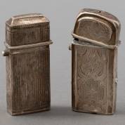 Twee zilveren tondeldoosjes, één meester: Pieter Kuilenberg, Schoonhoven, 1825, gewicht 40 gram, circa 6 × 2,5 × 1 cm