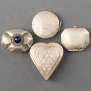 Vier diverse 1e gehalte zilveren pillendoosjes, brutogewicht 82 gram, hartvormige doosje circa 2 × 4 × 4 cm