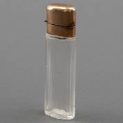 Kristallen parfumflacon met 14kt gouden montuur en dop -binnenstopje aanwezig-, circa 8,5 × 2,8 × 1,2 cm -gebruikssporen-