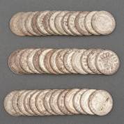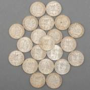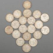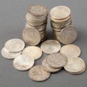Twintig grote zilveren rijksdaalders, circa 1960, gewicht 300 gram