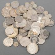 Divers zilveren muntgeld, Nederlands en buitenlands, gewicht 260 gram