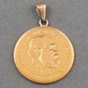 Gouden tientje, Willem III, 1879, aan plaatooghanger, gewicht 7,0 gram