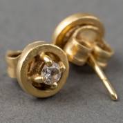 Paar 14kt gouden oorstekers gezet met briljantgeslepen diamantje, brutogewicht 1,9 gram, circa Ø 0,6 cm