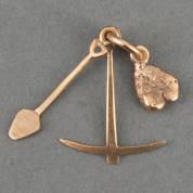 BWGG hanger met ruw hart, schepje en pikhouweel, gewicht 0,9 gram, lengte circa 2 cm