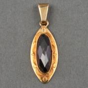 14kt gouden hanger gezet met ovale gefacetteerde granaat, brutogewicht 1,6 gram, lengte circa 2,7 cm