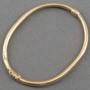 14kt gouden stijve armband met scharnier en bakslot en veiligheidsachtje, gewicht 7,4 gram, binnenmaat 6 cm -deukjes-