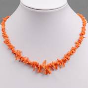 Bloedkoralen stokjescollier aan zilveren veerring sluiting, lengte circa 42 cm