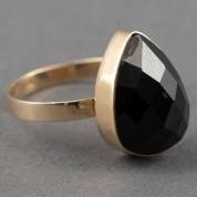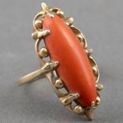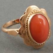 14kt gouden ring gezet met cabochongeslepen bloedkoraal, mt. 18,25, brutogewicht 4,8 gram