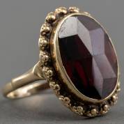 BWGG ring gezet met peergeslepen granaat, mt. 18, brutogewicht 4,0 gram