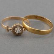 Twee BWGG ringen, één bandring, de ander gezet met roosdiamantje, gewicht 4,2 gram