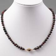 Granaten kralen collier van gefacetteerde granaatkralen, aan 14kt gouden sluiting gezet met twee granaatjes, lengte 47 cm