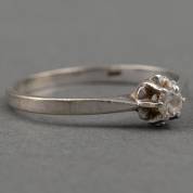 14kt witgouden solitairring gezet met diamantje in spiegelchatonzetting, circa 0.10ct., mt. 17,5, brutogewicht 1,6 gram