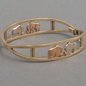 BWGG open stijve armband aan bakslot met veiligheidsachtje, en gedecoreerd met rosé- en witgouden olifantjes, gewicht 14,2 gram, binnenmaat circa 6 × 5 cm