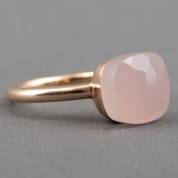 14kt roségouden ring, Pomellato, gezet met een kussengeslepen rozenkwarts, mt. 18,75, brutogewicht 7,4 gram
