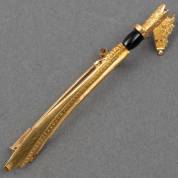 14kt gouden zwaardvormige speld met stukje onyx, China, brutogewicht 5,4 gram, lengte circa 6 cm