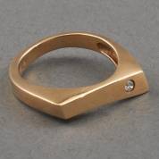14kt gouden modernistische ring gezet met briljantgeslepen diamantje, mt. 17, brutogewicht 4,4 gram