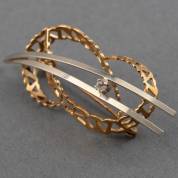 14kt bicolor gouden fantasiebroche gezet met simuli, brutogewicht 4,0 gram, circa 5 × 2 cm