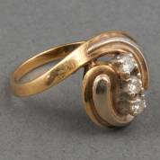 14kt bicolor gouden ring gezet met drie briljantgeslepen diamanten, mt. 17,75, brutogewicht 4,0 gram
