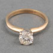 14kt gouden solitairring, gezet met briljantgeslepen diamant, mt. 18, brutogewicht 2,4 gram
