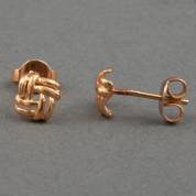 Paar 14kt gouden oorstekers met vlechtwerk, gewicht 1,4 gram, circa 0,6 cm