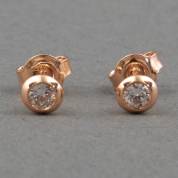 Paar 18kt roségouden solitairoorstekers, elk gezet met briljantgeslepen diamant, totaal circa 0.30ct, kleur F/G, kwaliteit VS/SI, brutogewicht 1,4 gram, circa Ø 0,4 cm