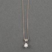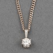 14kt witgouden gourmet schakelcollier waaraan 14kt witgouden solitairhanger gezet met briljantgeslepen diamant, circa 0.10ct, kleur F/G, kwaliteit VS, brutogewicht 2,4 gram, lengte circa 45 cm