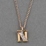 14kt witgouden gourmet schakelcollier waaraan 14kt wit- en geelgouden lettervormige hanger: N gezet met twee achtkantgeslepen diamantjes, brutogewicht 3,2 gram, lengte circa 42 cm